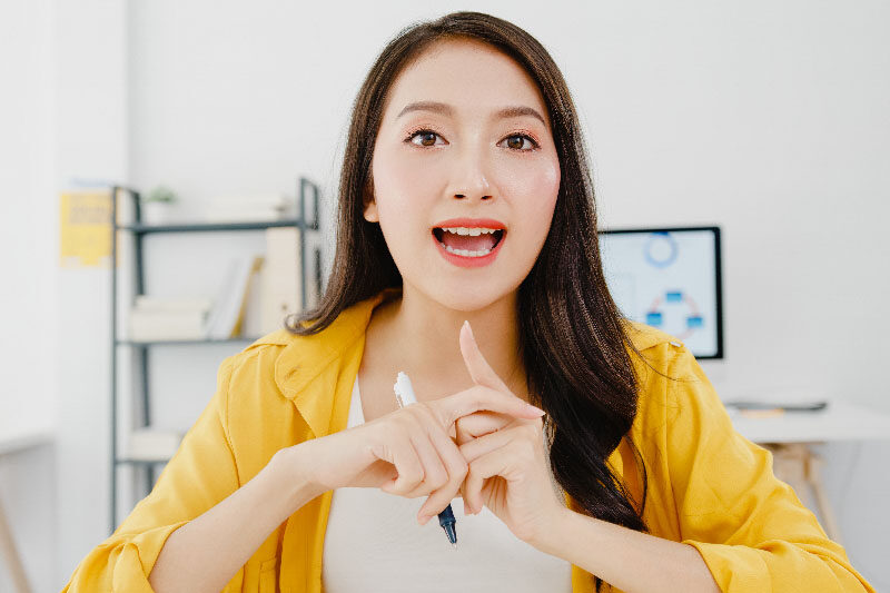 - 話すときも頬を軽く持ち上げるように声を出す